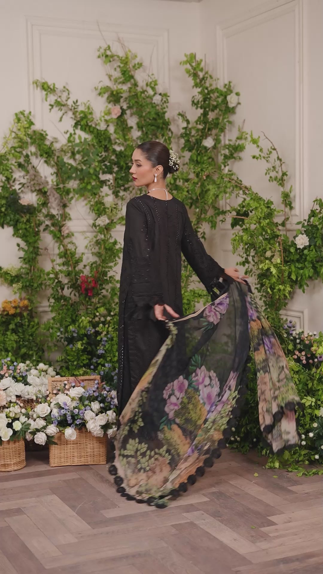 This dusky black lawn dress exudes sophistication with its subtle and elegant same-on-same embroidery, creating a refined yet striking appeal. The intricate sleeve detailing adds an extra layer of charm, elevating the overall design. Paired with a vibrant floral printed dupatta, it brings a refreshing pop of color to the ensemble. Perfect for this season.